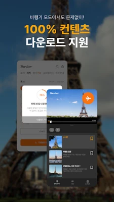 인터넷이 원활하지 않은 지역에서도 편리하게 사용할 수 있도록 모든 투어 콘텐츠를 휴대폰에 다운로드 받아 사용합니다.