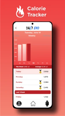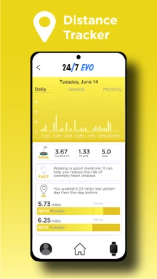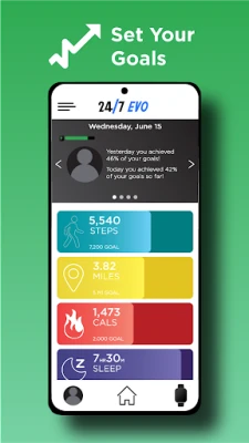 Set goals for health, fitness and nutrition. Pair with the 24/7 EVO to track steps, heart rate and calories burned.