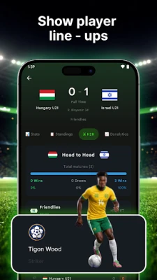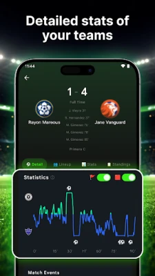 Custom notifications for goals, kick-off, and final results. Perfect for busy football fans.