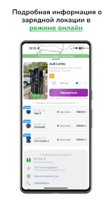 - Punkt E (TokBox) - Electrifly - ItCharge - ZEVS - ChargeNet - NonStopPower - Энергия Москвы - VoltForDrive - PlugMe - Malanka - Touch - Fora - E-way - UnitCharge - Electro.Cars - YouCharge - Sitronics - My.eCars - Soh100 - PortalEnergy - RosSeti (Россети) - EV-Time - РусГидро - РСК Сети - Green Drive - ЭЗС СК и многие другие провайдеры зарядной инфраструктуры. Отмечайтесь и пишете комментарии к конкретным зарядным станциям, а так же смотрите, что думают о зарядках пользователи.