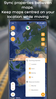 • Synchronise properties: Synchronise location, zoom, tilt, and bearing between the maps for a unified and cohesive mapping experience
