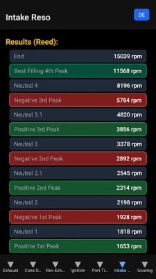 • Intake Resonance + Boost Bottle Optimizer – Align intake pulses with exhaust harmonics, for both reed valve and port controlled cylinders. Including boost-bottle volume and resonance frequency for better throttle response and efficiency at WOT. To improve scavenging efficiency, as the entire two-stroke system, from the carburetor to the crankcase to the muffler, shows resonance frequencies.