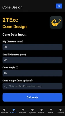 2TExc is the professional, all-in-one tool for calculation, verification, and optimization of two stroke engines. Covering expansion chamber design, diffuser & baffle cone geometry, port and ignition timing, intake resonance, gear ratios, and powerband, 2TExc replaces fragmented calculators with a coherent workflow.