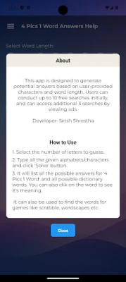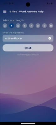Do you need help with 4 Pics 1 Word? This 4 Pics 1 Word Answers app is your ideal companion for finding all the answers, tips, and solutions to the popular word game: 4 pics 1 word. Whether you're stuck on the daily puzzles or a challenging level, this app provides solutions for every version of the game. Simply enter your letters, set the word length, and get instant answers for words with 3 to 9 letters!