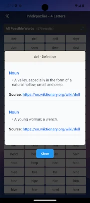 • Get Solutions – Instantly receive a list of possible words and their meanings to solve the puzzle!