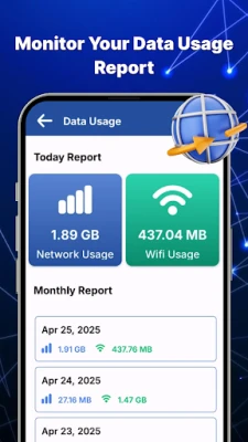 🔹 Data Usage: Keep an eye on your daily mobile data usage and control your internet habits.