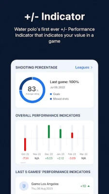 - Unlimited storage of your game results and personal analytics over time (including water polo's first ever +/- Performance Indicator that indicates your value in a game)