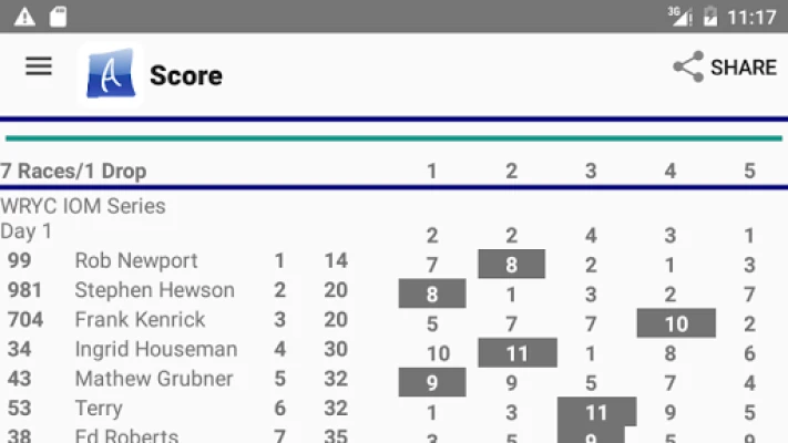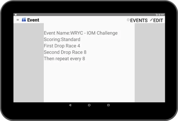 Afleet allows scoring radio sailing events. From club day to major (HMS) regattas. - standard fleet scoring (low points) - HMS scoring - average scoring (sailors can compete for any part of the sailing event) - single click to score as it happens - automatic score calculations - countback to 2 levels (as in RRS 2021-2024) - sailor details available for next event - publish results to HTML - email results directly from App - export to another device