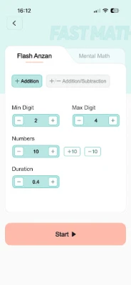 The Custom Mode includes two functions: Lightning Calculation and Abacus Mental Calculation. In Lightning Calculation, users can choose calculation methods, number ranges, number of calculations, and time intervals in a mental calculation format. In Abacus Mental Calculation, users can customize calculation methods, number of questions, and time for solving the questions. Through extensive and repetitive training, users can improve their mathematical and mental calculation skills.