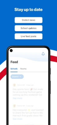 DISTRICT UPDATES In the Live Feed is where you’ll find updates from the administration about what’s going on in the district right now. Whether that’s celebrating a student’s success, or reminding you about an upcoming deadline.