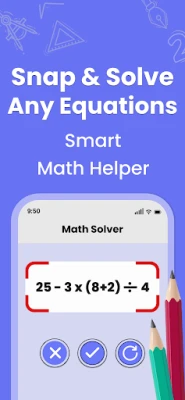 Solve math problems instantly with our math solution app! Whether you are stuck on a homework question or need quick maths solutions for any question, our maths solver has got you covered. Simply open the math solver camera to take a photo of the problem or choose one from your gallery, and watch as our photo math solver scanner app solve problems with step-by-step answers.