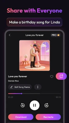 Turn your AI-generated songs into heartfelt gifts. With Doremi AI music generator, you can easily share your creations โ just tap "Send It Now" to get a unique link and surprise someone special. Whether it's a custom birthday song, Thanksgiving greeting, or New Year's Eve anthem, Doremi AI music generator helps you share emotions through music!