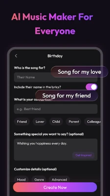 ๐ Birthday Songs: Make personalized birthday tracks for friends or family.
