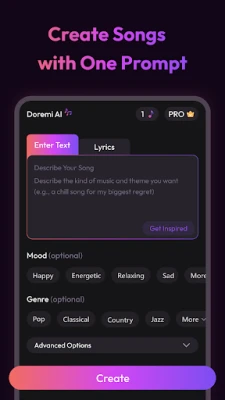 3. Tap "Create" and get your AI-generated music in minutes, ready to play or download.