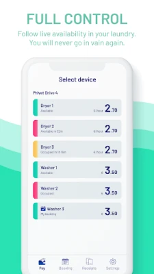 Avoid going to the laundry only to find occupied machines, collecting and saving coins, or topping up your laundry cards.