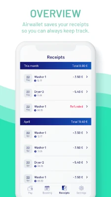 Nobody likes coins or laundry tokens! The Airwallet app comes with almost every payment method and will enable you to pay directly from your smartphone and keep track of your purchases.