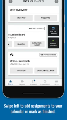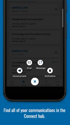 CONNECT: Read your class announcements, find all your notifications in one place, message with faculty, classmates, and advisors, and connect to your email from one place in the app