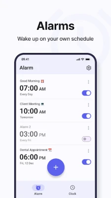 Stay on schedule with the Alarm Clock app, and make sure you wake up on time with our Alarms feature.