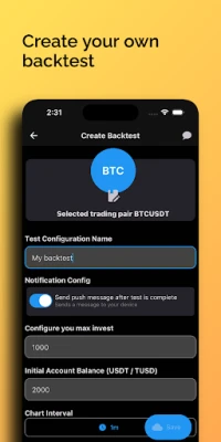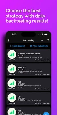 🚀 New! Custom Backtests – Set up tailored backtests on any trading pair with any technical indicator. Define stop-loss and take-profit levels, and schedule automated runs to refine your strategies with ease. Get push notifications instantly when a new test completes.