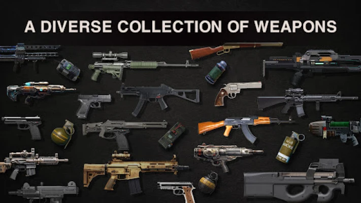 Taser, M16, MP7, M60, M4A1, AK-47, MP5, Shotgun, Sniper Rifle, RPG, Grenade Launcher… and many more.