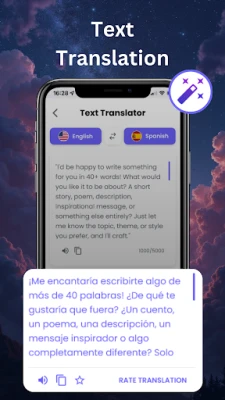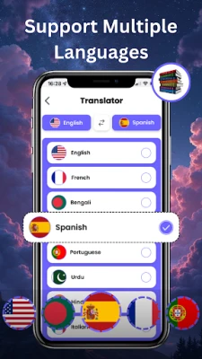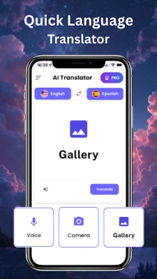 Voice Translator – Speak naturally and let the app translate your words in real time. Perfect for conversations and learning pronunciation.