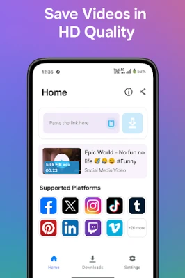 SocialDown is a simple and powerful video & media saver that lets you download your favorite public videos with just one tap. Paste the link or share it to the app β quick, clean, and easy. Watch offline anytime, without buffering or ads.