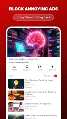 Ad-Free Experience: Enjoy smooth video playback. Block annoying ads automatically while watching.