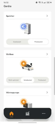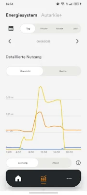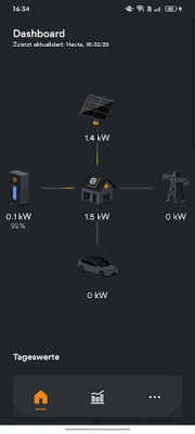 Übersichtlich werden hier die Leistungsdaten Ihrer PV-Anlage, sowie der Ladezustand Ihres Stromspeichers dargestellt. Auch die Einspeisung ins öffentliche Netz und Ihre Autarkiequote lassen sich direkt auf dem Home-Bildschirm ablesen.