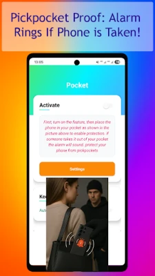 Anti-Pickpocket in Public: Activate pocket mode and put your phone in your bag or pocket when in public places (bus, café, library). If anyone tries to grab it, the motion sensor will detect it and a loud alarm will scream, scaring off the thief