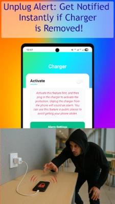 Charger Removal Alert – Protects your device at public charging stations. An alarm will sound if someone unplugs your phone from its charger without permission.