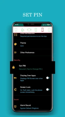 • First set your PIN. Go to Anti-Theft Security Alarm settings screen and select Set PIN.