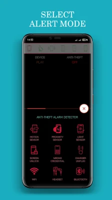 • From Home Screen click on Anti-Theft Security Alarm Shield button and select your desired alert sense mode.