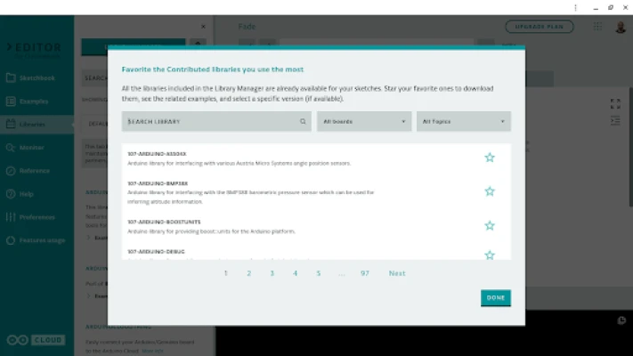 Developed to allow you to play with Arduino electronics and programming in a shared, always-up-to-date environment. All the contributed libraries are automatically included, and new Arduino boards are supported out of the box (*).