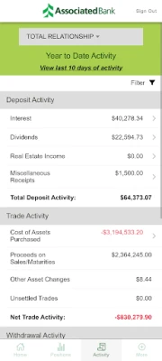 Convenient and secure access to your trust and investment information wherever you are with Associated Portfolio Online Mobile App. The app provides a snapshot of your total wealth, making it easy for you to share information with your trusted advisor, making informed financial decisions based on your goals.