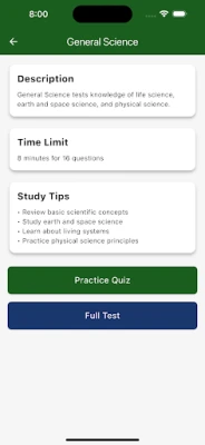 Experience authentic ASVAB-style questions with both Practice Quizzes and Full Tests. The timed test mode simulates real exam conditions to help you build confidence and reduce test anxiety.