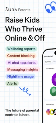 Aura Parents is a next-generation parental control app built to help families guide their children’s digital habits and ensure kid safety across all devices. It combines screen time control, online safety monitoring, and AI-powered wellbeing tools — so you can help your child thrive online and offline.