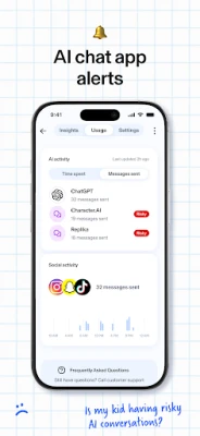 Aura’s AI-based monitoring system identifies risky chat interactions across popular apps. It flags high-risk AI chat apps, analyzes conversation sentiment, and alerts you when a conversation or app may impact your child’s safety.