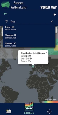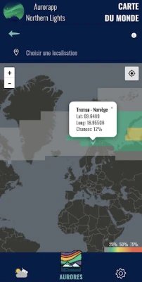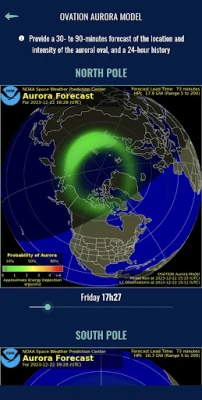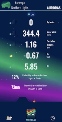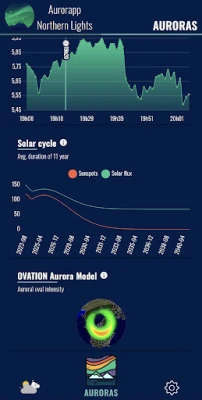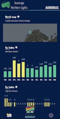 - World map to see quickly the probabilities to see an Aurora all over the world! - KP Index in real-time, in the next hour and the next days, - Solar wind data in real-time, - Solar cycle for the next 11 years, - And even a complete weather app to optimize your research !