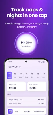 • Log day naps and night sleep in one tap with a simple baby nap tracker.