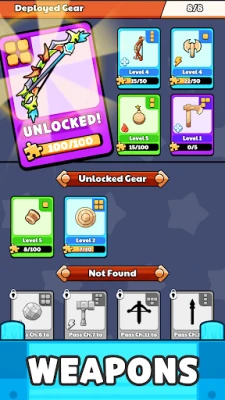 Strategically manage your inventory to maximize your arsenal's potential. Merging weapons levels them up, unleashing greater power. Certain equipment in your backpack grants buffs to other items around them, requiring you to thoughtfully place each item to enhance your combat abilities.