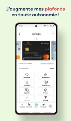 Avec Bank-e, vous avez accès en temps réel à un ensemble de fonctionnalités relatives à vos comptes bancaires et vos cartes :