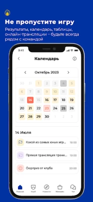 - Календарь, расписание и результаты матчей;