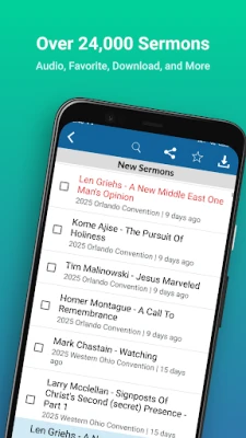 You have the option to download audio files and sermons and listen to them when you don't have an internet connection. You also have the option to add them to a favorites menu.