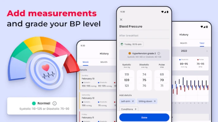 📊 Detailed History: Dive into a comprehensive blood pressure reading history. Our app provides detailed graphs and trends, allowing you to visualize your progress over days, weeks, or months. Identify patterns, track improvements, and celebrate your successes.