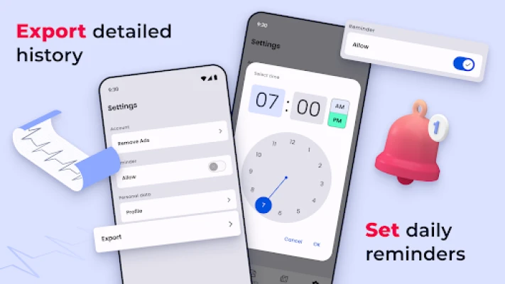 ⏰ Set Measuring Reminders: Never miss a beat when measuring your blood pressure. Set personalized reminders that suit your schedule and receive gentle nudges from taking your readings. Consistency is key, and we're here to support you every step of the way.