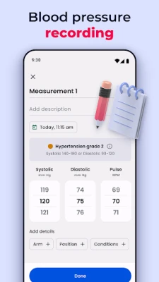🩸 Track Your Blood Pressure: Stay on top of your health by tracking your blood pressure readings effortlessly. Our intuitive interface makes it easy to record your measurements and track changes over time. Empower yourself with knowledge and take control of your well-being.