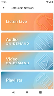 The Bott Radio Network App was created with the Subsplash App Platform.