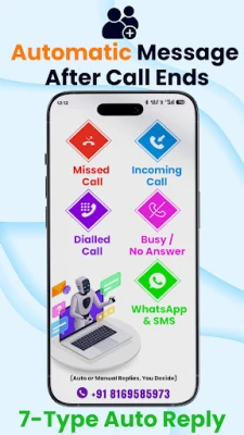 📞 Auto Reply After Calls Automate your text replies by sending predefined SMS after completed outgoing or incoming calls.