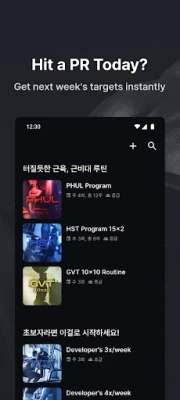 Launch proven programs like PHUL or GZCL with a tap. We auto-calculate working weights from your latest 1-rep max and track your strength gains session by session.