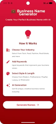 Find the perfect brand name with Business Name Generator, the ultimate AI-powered business name generator app that helps you create unique, creative, and professional names in seconds.